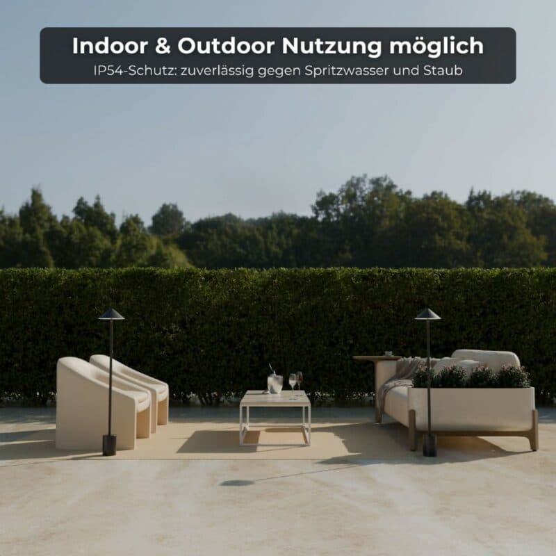 Die Stehleuchte Saphira besticht durch ihr schlichtes, modernes Design. Gefertigt aus wetterbeständigem Eisen und mit einem Fuß in edlem Marmor, ist sie nicht nur robust, sondern auch ein stilvoller Blickfang. Die gleichmäßige, blendfreie Lichtverteilung sorgt für eine angenehme Atmosphäre, sei es auf der Terrasse, im Wohnzimmer oder im Garten. Das warmweiße Licht (2700 Kelvin) schafft eine behagliche Stimmung und lädt zum Verweilen ein. Die Schutzart IP54 macht die Leuchte unempfindlich gegen Staub und Spritzwasser, sodass Sie sie bedenkenlos im Außenbereich verwenden können.