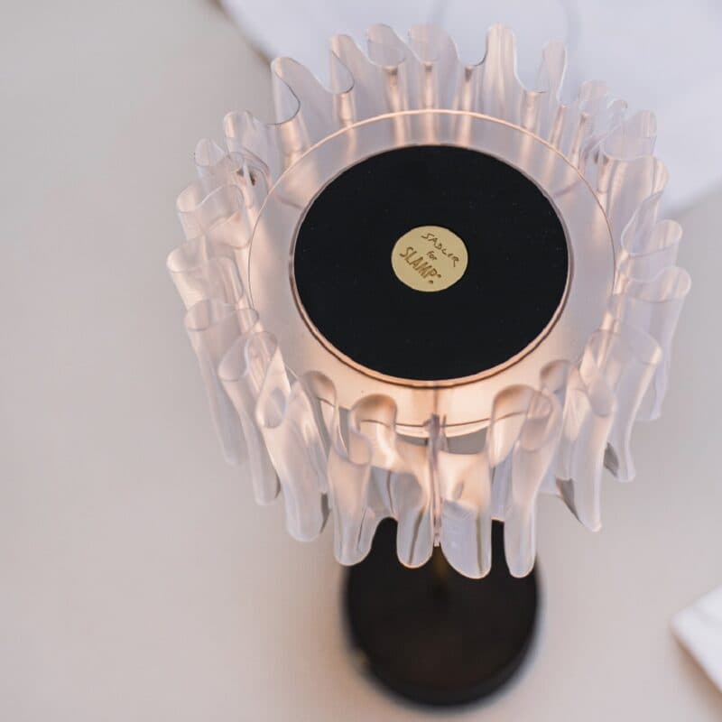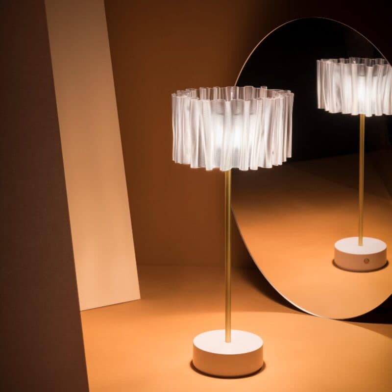 Design trifft auf Handwerk bei der Slamp Akkutischleuchte Accordéon Battery