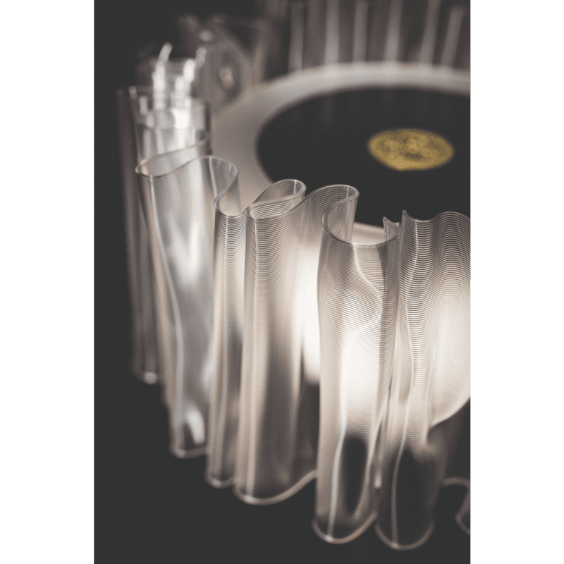 Ihre schlanke Silhouette und ihre einzigartigen Materialien machen die Slamp-Tischleuchte zu einem wahren Hingucker. Egal, ob auf Ihrem Nachttisch oder als Akzentbeleuchtung in Ihrem Wohnzimmer: Die rund 37 cm hohe Accordéon macht überall eine gute Figur. Sie eignet sich als dekorative Ergänzung bei modernen Einrichtungsstilen wie auch bei romantisch-verspielten Interieurs. Slamp ist bekannt für seine hochwertigen Materialien, die auch bei der Accordéon zum Einsatz kommen. Der transparente Leuchtenschirm (Prisma) ist aus Lentiflex (Technopolymer-Kunststoff) hergestellt und sorgt für außergewöhnliche blendfreie Lichteffekte. Doch Lentiflex hat noch weitere Vorteile: Es ist besonders robust, aber trotzdem sehr leicht. Da es antistatisch behandelt ist, wird Staub abgewiesen. Und Lentiflex ist besonders widerstandsfähig gegenüber UV-Strahlen und Wärme. Der Leuchtenstab ist aus eloxiertem Aluminium in satiniertem Messing. Beim Leuchtenfuß, ebenfalls aus eloxiertem Aluminium, haben Sie zwei Farbvarianten zur Auswahl: edles mattes Schwarz oder cleanes mattes Weiß.