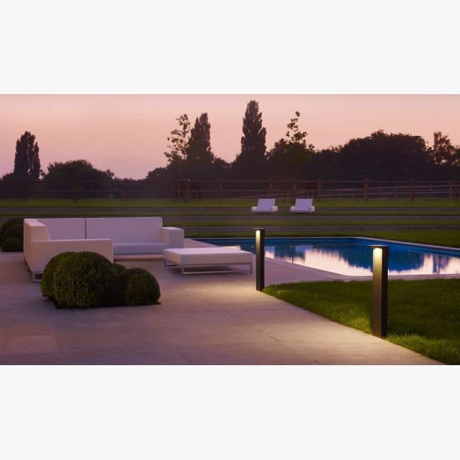 Eine ideale Beleuchtungslösung bietet die Oblix 40 von Deltalight. Sie hat ein schmales rechteckiges Metallgehäuse in der Farbe Dunkelgrau, und bietet mit ihren 7,1 Watt starken LEDs einen maximalen Ausstrahlungswinkel und ein beeindruckendes Lichtspiel. Die Gesamthöhe der Leuchte beträgt 41 cm, und ist der Schutzklasse IP55 (gegen Strahlwasser geschützt) zugeordnet, somit eignet sie sich besonders gut als Akzent-oder Wegebeleuchtung für den Außenbereich. Die Leuchtmittel sind im Lieferumfang enthalten.