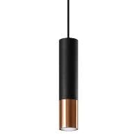 Der Lampenschirm besitzt einen mattschwarzen Body mit einem glänzenden Metall-Finish in Chrom, Kupfer oder Gold. Die schmale Zylinderform des Leuchtkörpers besticht mit einem Durchmesser von 6 cm und einer Höhe von 29 cm. Die daraus resultierende punktuelle Beleuchtung sorgt für eine gezielte Zonenbeleuchtung. In Reihe gesetzt eignet sie sich zudem für längliche Flächen wie den Esstisch oder der Kücheninsel.