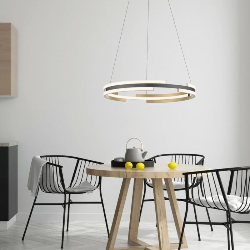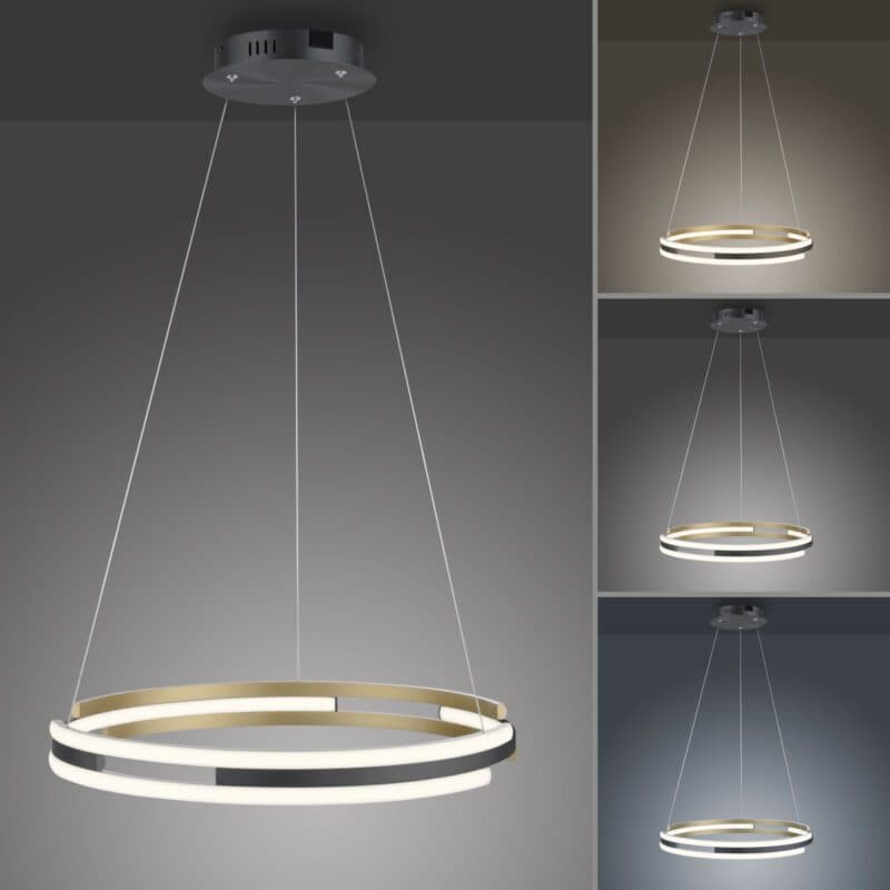 Der ringförmige Lampenschirm in Anthrazit und Messing matt bildet einen attraktiven Blickfang für jeden Raum und sorgt zugleich für eine individuelle Beleuchtung. Der großzügige Schirm-Durchmesser von ca. 60 cm gewährleistet eine großflächige Ausleuchtung. Die manuelle Höhenverstellung zwischen 60 und 120 cm ermöglicht es Ihnen, die optimale Aufhängung der Lampe je nach Raumhöhe und Anforderungen festzulegen. Die Paul Neuhaus Pendelleuchte Q-Beluga eignet sich besonders gut für den Einsatz über Ihrem Esstisch, wird aber auch im Wohn- oder Schlafzimmer zu einem Highlight.
