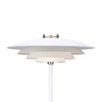 Die Stehleuchte Bretagne von Nordlux besticht mit einem formschönen Lampenschirm. Das Licht dringt dabei durch die Spalten zwischen den Metallschirmen und sorgt in Kombination mit den Reflexionen an der weißen Innenseite für einen weichen und harmonischen Lichtaustritt.