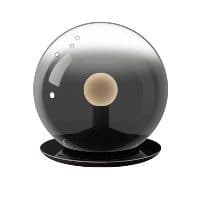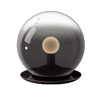 Der kugelförmige Lampenschirm aus Glas mit 20 cm im Durchmesser geht nahtlos auf einen flachen Sockel aus Metall über. Die Glaskugel scheint den Fireball zu umhüllen, der scheinbar schwebend in ihrem Inneren verweilt. Dies wird möglich gemacht durch die fast unsichtbare Halterung in tiefstem Schwarz – Musou Black. Das kopfverspiegelte Glas sorgt dabei für direkt nach oben strahlendes Licht. Kombiniert mit der stimmungsvollen Beleuchtung des Fireballs schafft die Luna eine einzigartige Lichtatmosphäre.