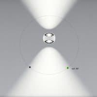 Die kompakte Leuchte besitzt einen Durchmesser von 13 cm. Hinter dem optischen Glas ist eine kleine Linse verborgen. Dabei können Sie sich für einen Lichtkegel mit klar konturierten (contour) oder weich-harmonischen (soft) Rändern entscheiden. Der Abstrahlwinkel beträgt ca. 80°.