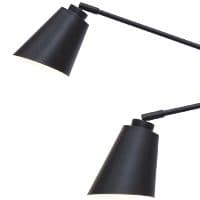 Das 200 cm lange Kabel lässt sich einfach an die nächstgelegene Steckdose anschließen. Die quadratische Wandhalterung mit dem praktischen Schalter können Sie daher unabhängig von einem direkten Stromanschluss montieren. Die Leuchte besteht aus robustem Eisen. Beide Leuchtenarme lassen sich in einem 180-Grad-Winkel drehen. Die Schirme sind ebenfalls sehr flexibel und zudem dreh-, schwenk- und neigbar.