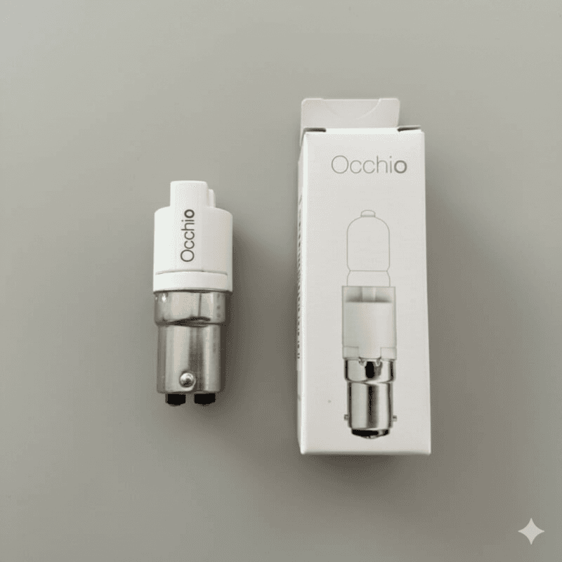 Sie sind stolzer Besitzer einer Occhio-Leuchte mit einer B15d-Fassung und möchten diese gerne auf eine G9-Fassung umrüsten? Mit dem Leuchtmitteladapter von Occhio ist das gar kein Problem! In nur wenigen Handgriffen können Sie Ihre Occhio umrüsten. Der Adapter ist für den Einsatz mit G9-Leuchtmitteln mit einer maximalen Leistung von 70 Watt (Halogen) oder 8 Watt (LED) geeignet. Der Leuchtmitteladapter wird wahlweise ohne Leuchtmittel oder mit einem Leuchtmittel-Doppelpack geliefert. Die optional gelieferten G9-Halogenleuchtmittel haben eine Leistung von 70 Watt bei warmweißen 2900 Kelvin und 1173 Lumen.